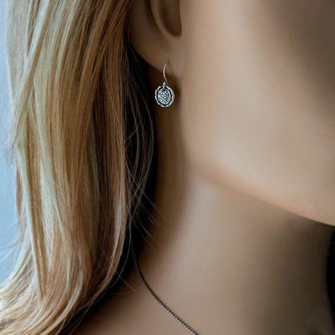 Sterling Silver Victorian Flower Earrings | Dainty Jewelry Cast from an Antique Button