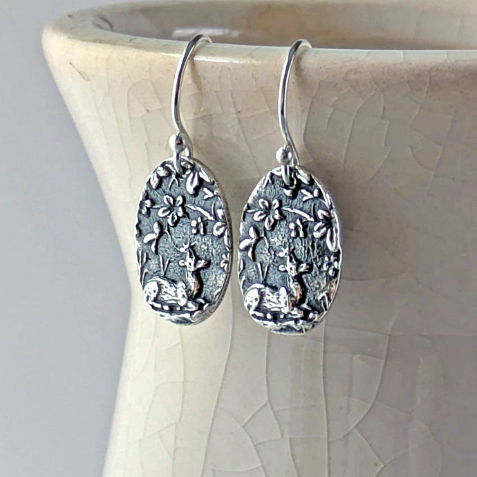 Sterling Silver Deer Earrings: Artisan Woodland Nature Jewelry