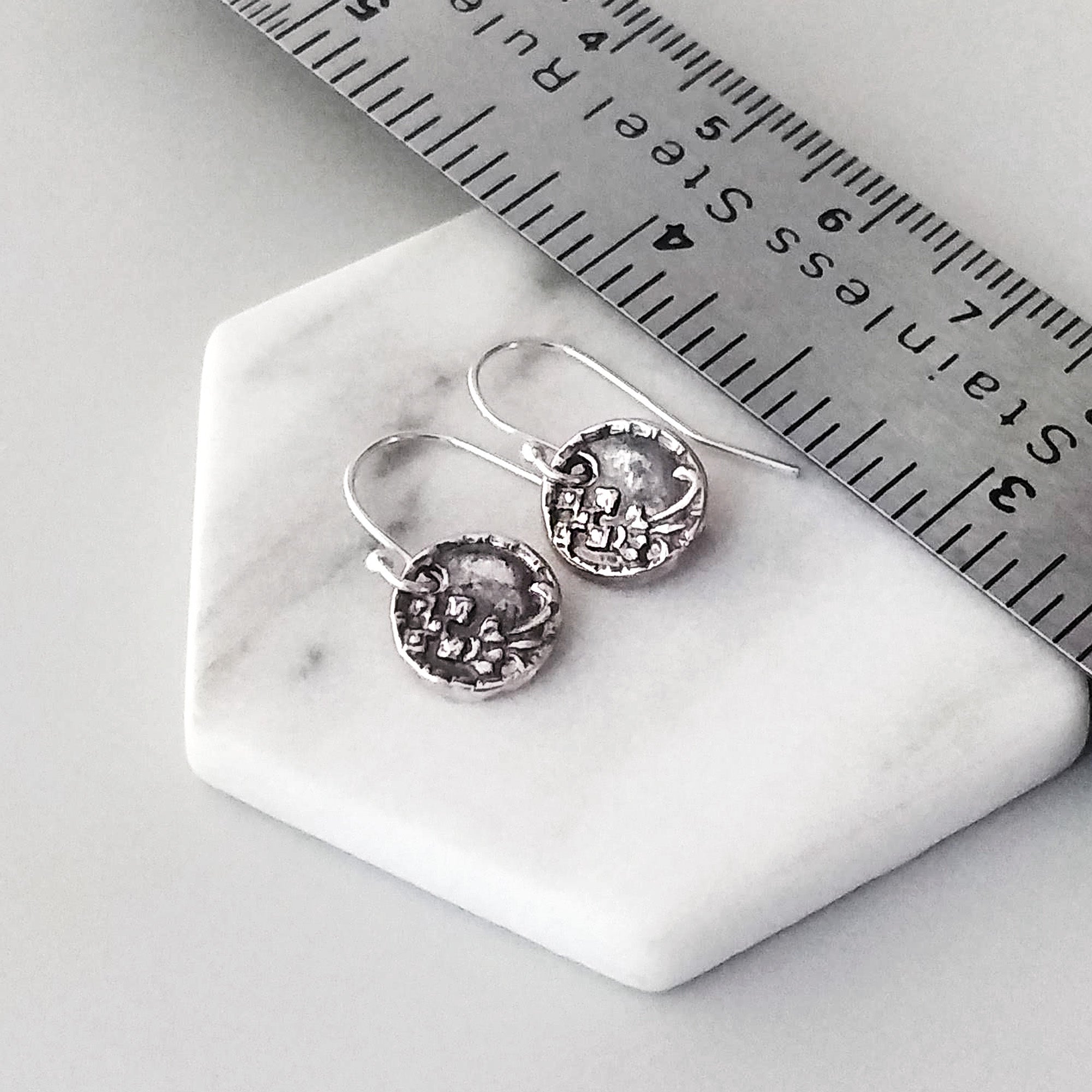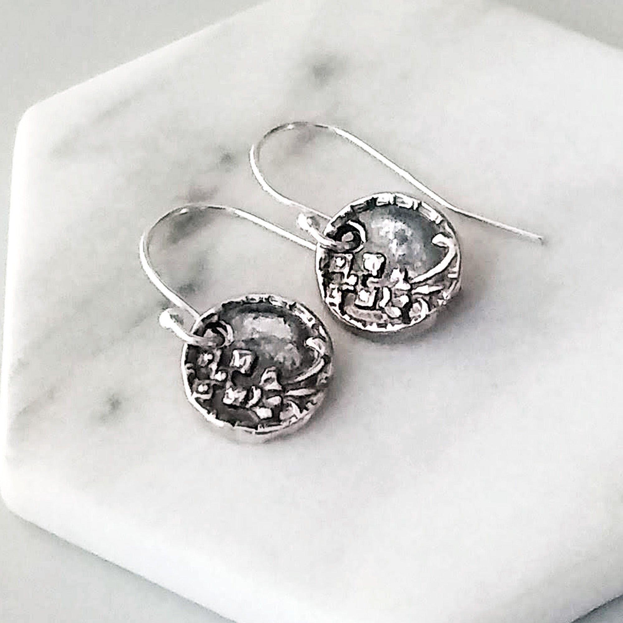These dainty Victorian button earrings are so delicate and romantic. I cast them in sterling silver precious metal clay from an original Victorian era button and then oxidized them to bring out the beautifully detailed design, which is a trumpet flower with a lattice ornament.