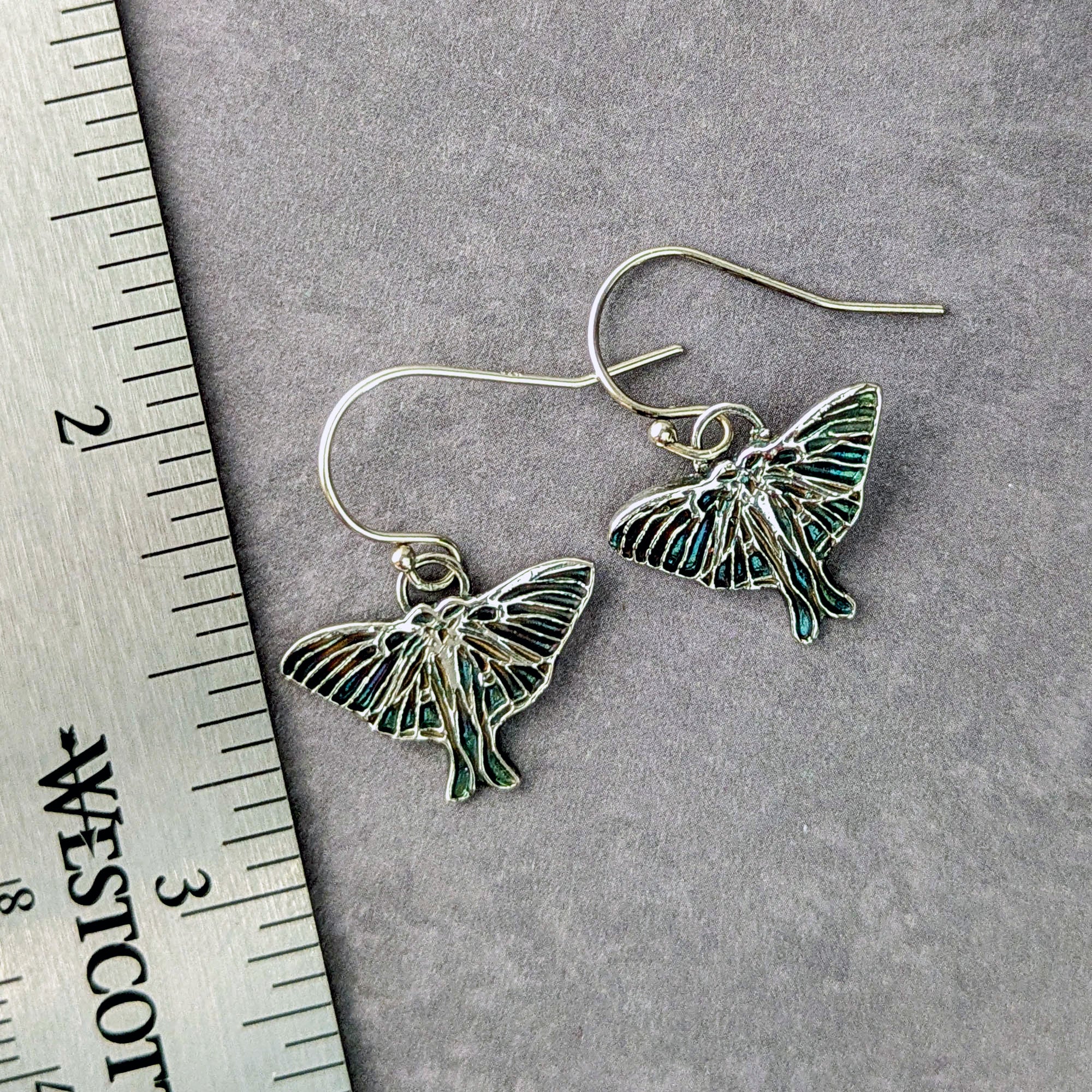 The earrings measure 3/4 of an inch in total length and are just under 3/4 of an inch wide.