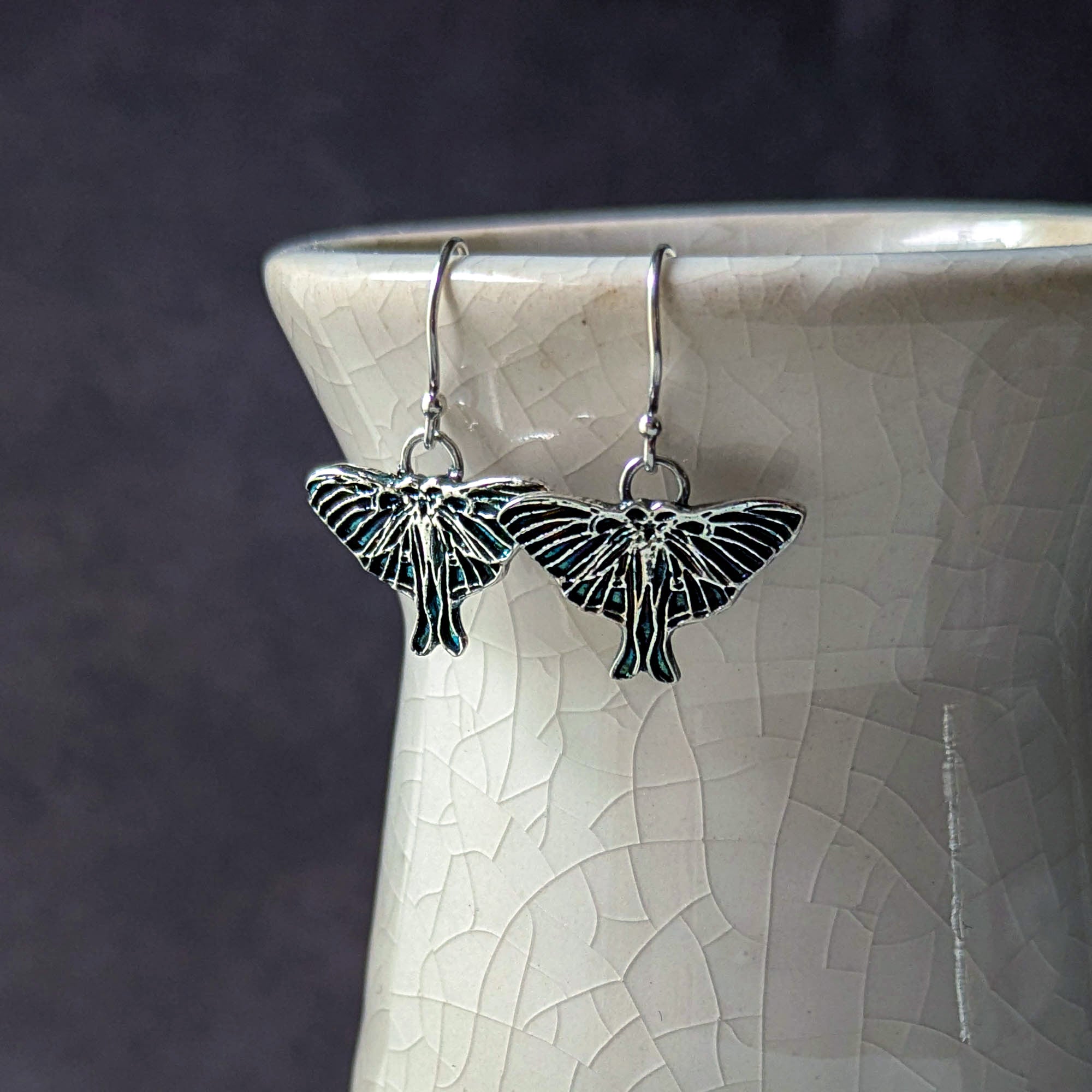 Moths are a beloved source of inspiration for me in that, like butterflies, they are not only beautiful and magical, they are a symbol of transformation. Whenever I see one I believe I have been given a gift, a reminder to myself that I am always transforming myself, when I feel that I am not growing and moving forward as much as I think I should I remember the moth in it's cocoon, appearing to be at rest but doing all kinds of important work underneath the surface.